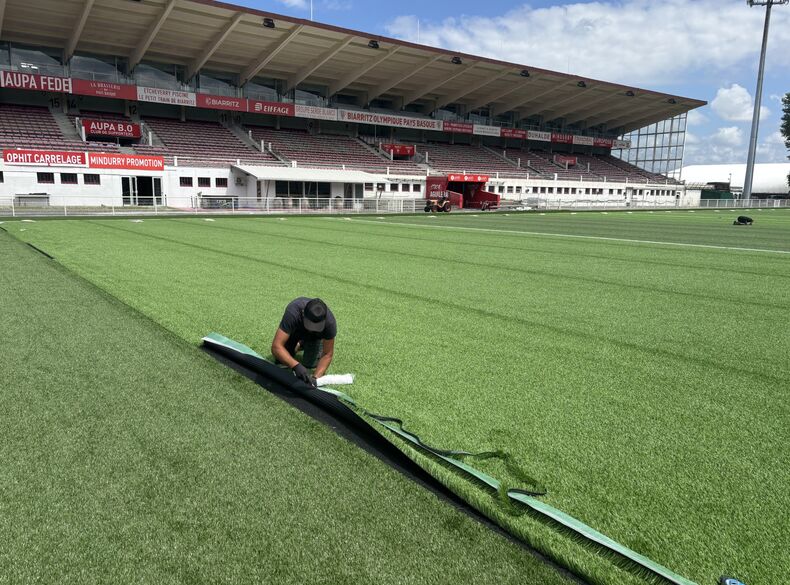 Le Biarritz Olympique (BOPB) s’équipe d’un terrain synthétique nouvelle génération sur le site de Larribau, un chantier stratégique pour le club et la ville, mené par Arnaud Sports en collaboration avec SportingSols, deux entités du Groupe Papin.